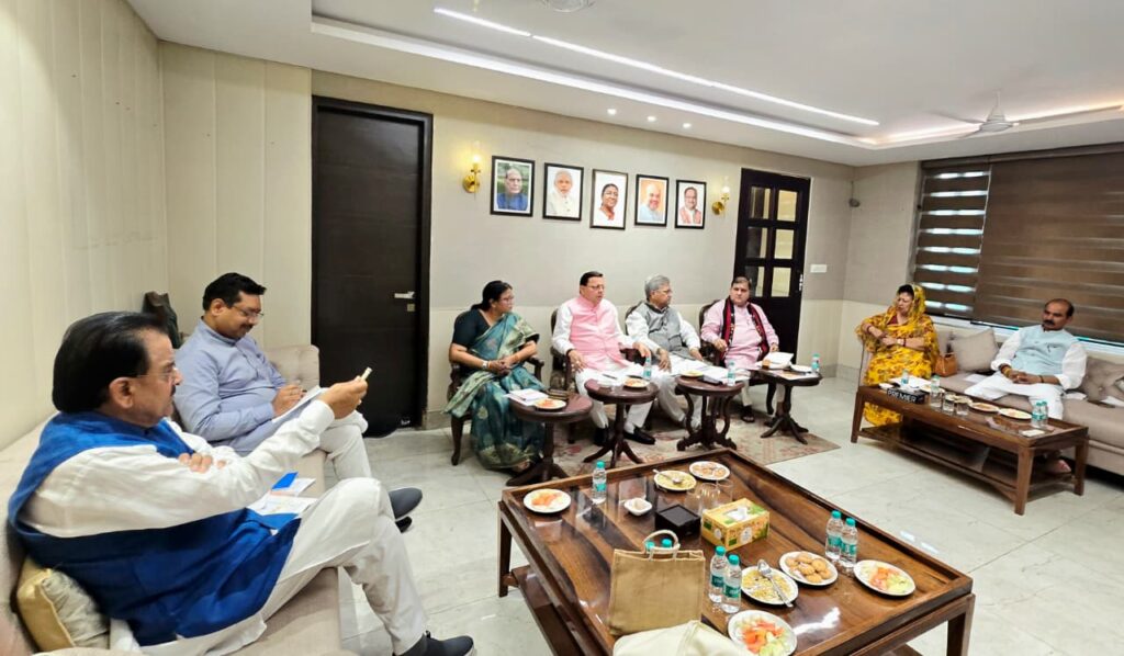 नई दिल्ली दौरे के दौरान सीएम पुष्कर सिंह धामी ने प्रदेश संगठन से जुड़े नेताओं और उत्तराखंड के सांसदों से मुलाकात की। इस बैठक के दौरान बीजेपी के उत्तराखंड प्रभारी दुष्यंत गौतम भी मौजूद रहे। इसके साथ ही प्रदेश अध्यक्ष महेंद्र भट्ट, प्रदेश सह प्रभारी रेखा वर्मा और प्रदेश महामंत्री (संगठन) अजय कुमार भी मौजूद रहे। इस मीटिंग के दौरान बीजेपी के प्रदेश संगठन के कामकाज को लेकर चर्चा हुई।